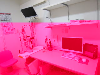 検査室 白を基調とした、清潔で明るく開放的な空間の検査室では、一般的な視力検査や眼圧検査、眼鏡の検査や処方、コンタクトレンズの検査・処方などを行います。また、暗室では、静的・動的視野検査や眼底カメラ、光干渉断層像(OCT)などを行います。 |
